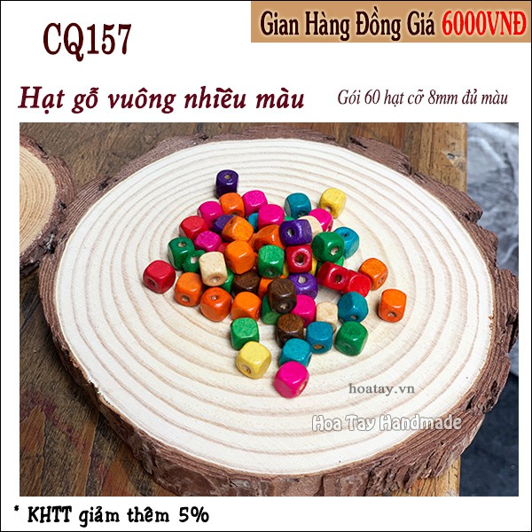 Hạt gỗ trang trí hình vuông, hạt nhiều màu Q157