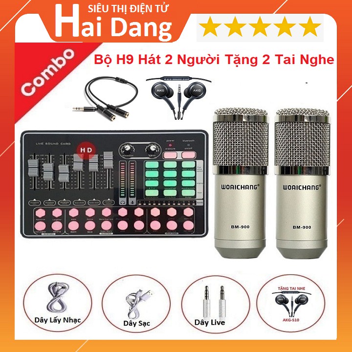 Thiết Bị Âm Thanh > Dàn âm thanh > Hệ thống âm thanh giải trí tại gia || Bộ Hát Livestream Karaoke, 2 Người Hát Song Ca - Combo Micro Thu Âm BM 900 Sound Card H9 - Tặng 2 Tai Nghe AKG -S10Còn hàng
