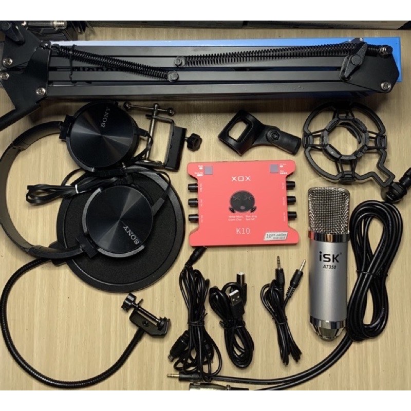 Bộ hát livestream mic ISK AT350 sound card K10 Tai Ốp Hát Thu âm Karaoke online bảo hành 1 năm chất lượng tuyệt vời