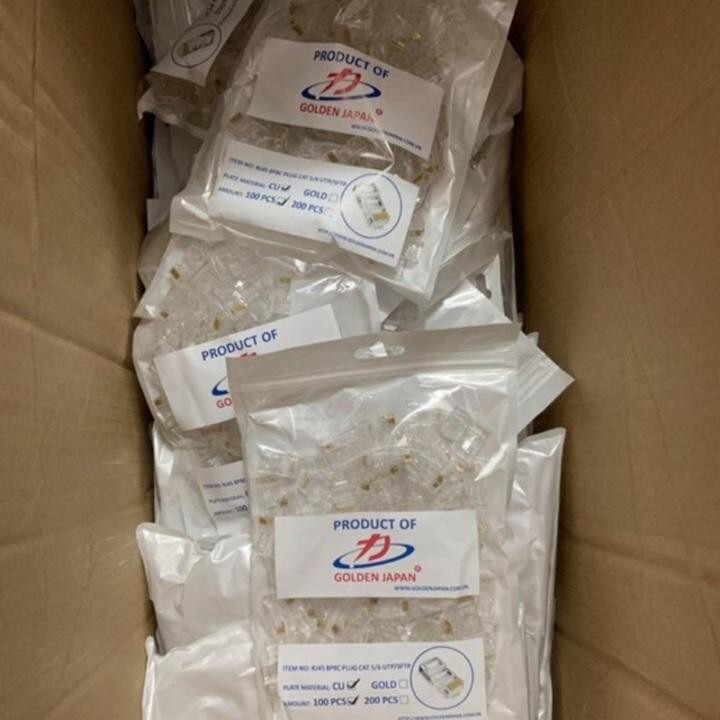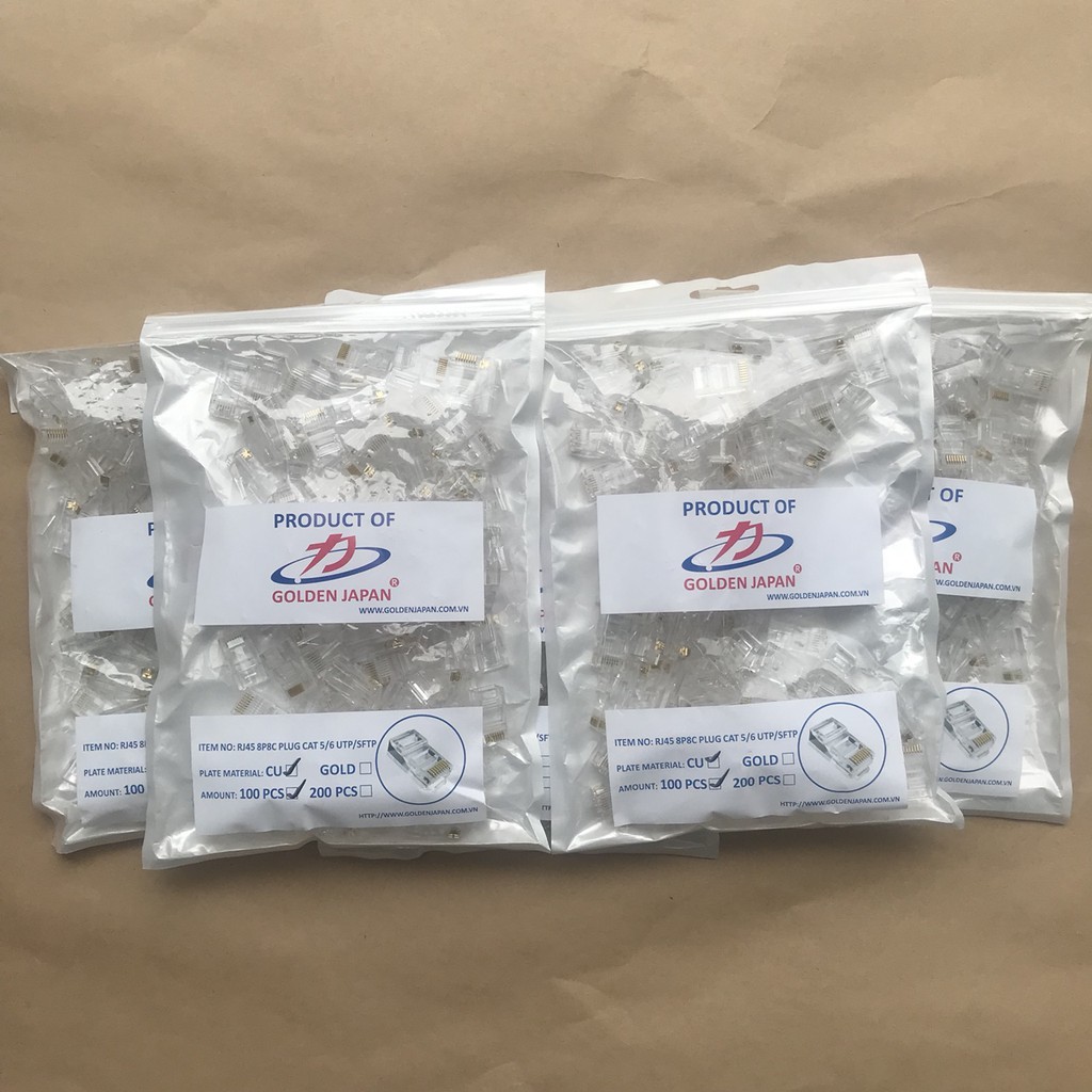 Hạt đầu cáp mạng RJ45 Golden Japan được sản xuất bằng công nghệ tiên tiến của Nhật bản.Nên đáp ứng được các tiêu chuẩn khắt khe nhất của việc truyền dẫn tín hiệu.