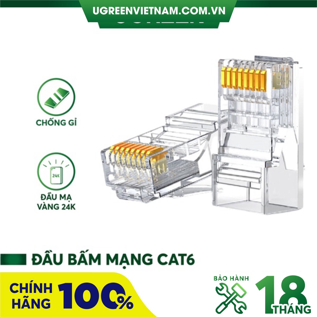 Thông tin sản phẩm : Hạt mạng RJ45 Cat6 chính hãng Ugreen- Hãng sản xuất : Ugreen