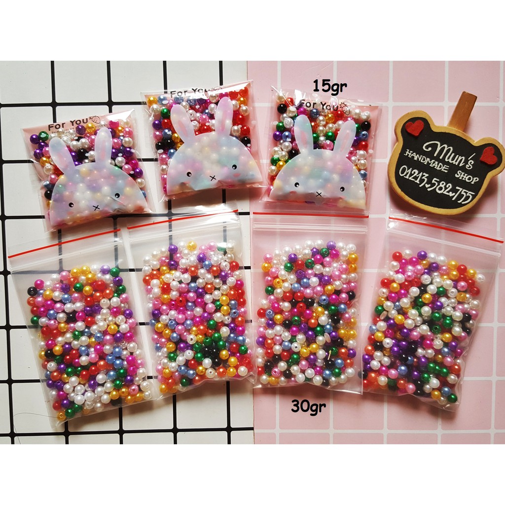Sở thích & Sưu tầm > Dụng Cụ May Vá || Hạt ngọc trai nhựa 6mm - Hạt cườm xỏ hạt, làm nhụy hoa, trang trí handmadeCòn hàng