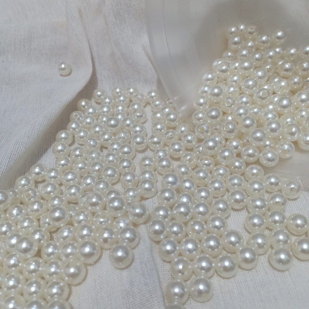 Sở thích & Sưu tầm > Dụng Cụ May Vá || Hạt Ngọc Trai Nhựa Có Lỗ 4mm, 6mm, 8mm, 10mm, 12mm, 14mm - gói 10gamCòn hàng