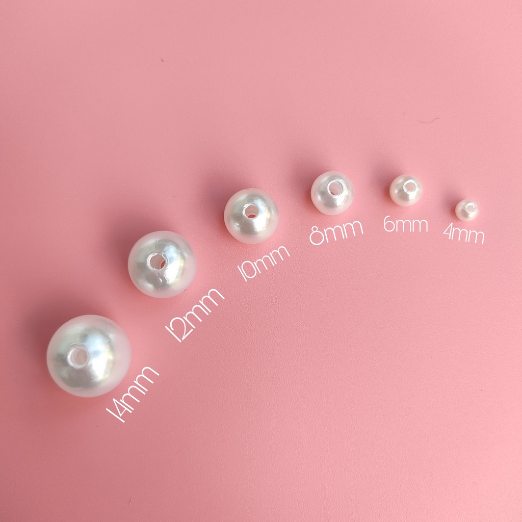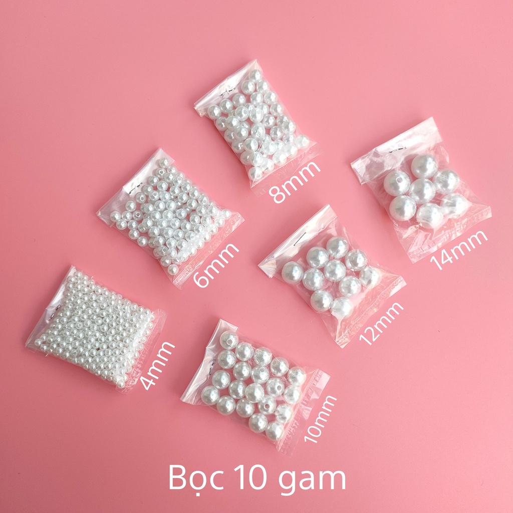 Hạt Ngọc Trai Nhựa Có Lỗ 4mm, 6mm, 8mm, 10mm, 12mm, 14mm - gói 10gam