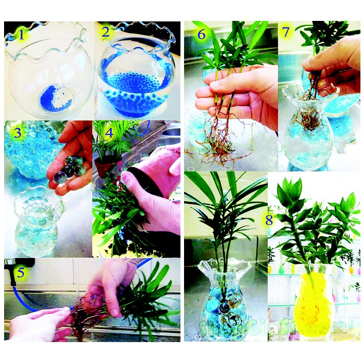 1. Đất tinh thể trồng cây - hạt trân châu trồng cây khi sử dụng bạn cần ngâm vào nước (1 gói 10g ngâm với 1 lít nước) từ 6-8h, nó sẽ lớn gấp 200 lần kích thước ban đầu, sau khi ngâm bạn đổ bỏ lượng nước thừa và xả lại một lần nữa.