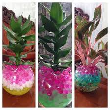 Đối với những loại cây cắm trong nước như Cây sống đời, cây Hoa Đại Hồng Môn, các loại hoa cắt … thì sau khi rửa sạch bụi bạn có thể cắm vào lọ thủy tinh, chậu thủy tinh và cho hạt đất tinh thể và nước vào.