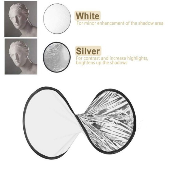Hắt sáng 2 in1 với màu bạc và vàng, hoặc bạc và trắngMàu trắng: phản xạ ánh sáng và giúp cho nguồn ánh sáng trở nên mềm mại hơn.