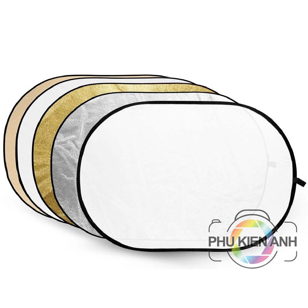 Hắt sáng bầu dục 100*150cm và 150*200cm 5 trong 1Có 5 loại bạc, vàng, trắng, đen, soft mền xuyên sáng. Thiết kế bầu dục đễ cầm nhẹ nhàng và dễ xếp hơn.