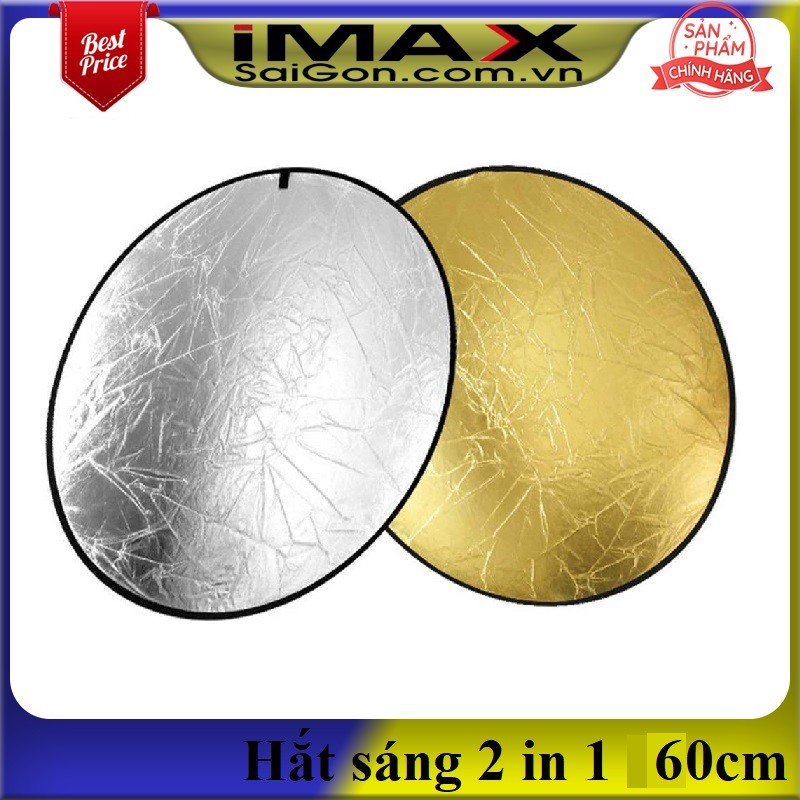 Hắt sáng tròn 2 in 1 vàng-bạc, size 60cmTấm hắt sáng gồm 2 mặt: 1 trắng, 1 vàng