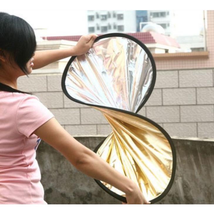 Cameras & Flycam > Phụ kiện máy ảnh > Thiết bị ánh sáng và phòng chụp || Tấm hắt sáng tròn 2 mặt đầy đủ kích thước 2 trong 1 vàng bạcCòn hàng
