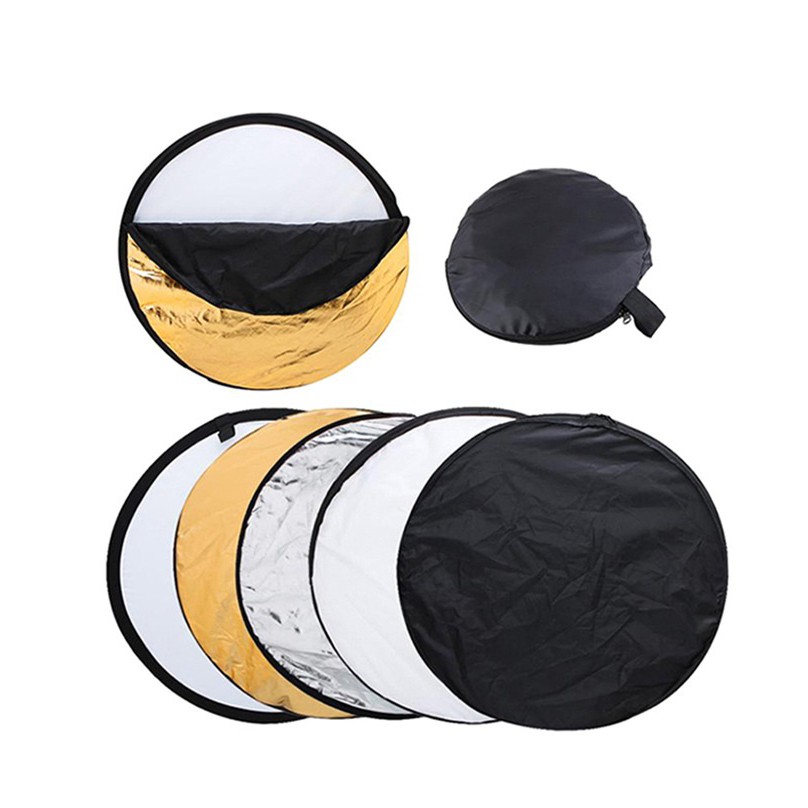 Cameras & Flycam > Phụ kiện máy ảnh > Thiết bị ánh sáng và phòng chụp || Tấm hắt sáng tròn 5 trong 1 gấp gọn tiện lợi cho cả chụp ảnh ngoại cảnh/studio size 110cmCòn hàng