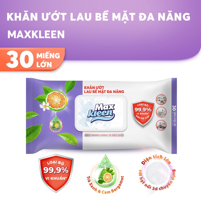 Giới thiệu [HC GIFT] Khăn Ướt Lau Bề Mặt Đa Năng MaxKleen (30 miếng)