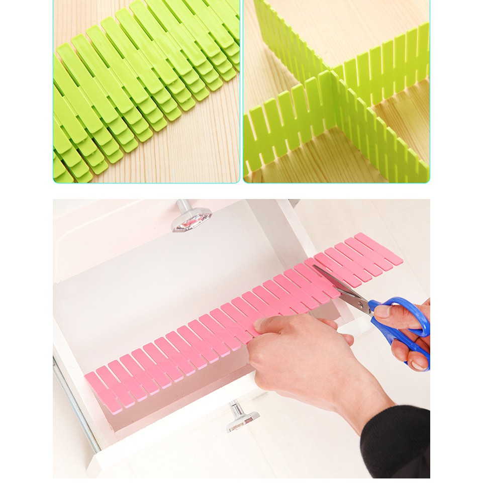 -------------- COMBO 2 BỘ (8 THANH) - TẶNG 3 MIẾNG DÁN TƯỜNG HÌNH THÚ 30K --------------Thanh chia ngăn tủ, ngăn kéo gồm 4 thanh chắn hình chữ nhật, được đặt trong các hộc bàn, kệ tủ... để phân chia thành nhiều ô nhỏ cho bạn tùy ý sắp xếp, phân loại đồ đạc theo sở thích, tạo nhiều không gian đựng quần áo, vật dụng lỉnh kỉnh trong hộc tủ mà không sợ mọi đồ đạc bị lẫn lộn, tiết kiệm không gian triệt để.