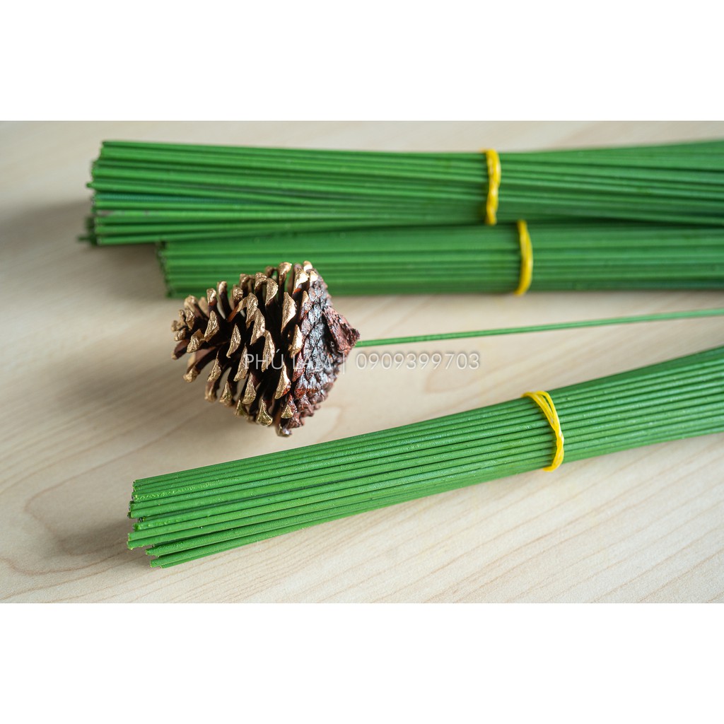 [HCM] 50 - 100 cây Que kẽm làm hoa 30cm | Que kẽm bọc nhựa xanh 30 cm - 40cm làm thân hoa giả, hoa giấy nhún hoa sáp