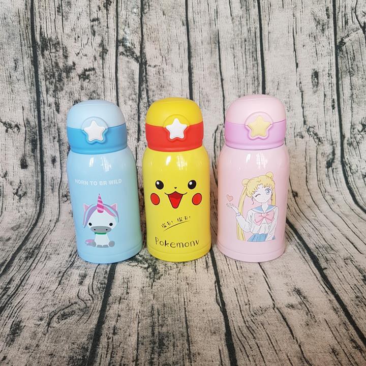 HCM - Bình giữ nhiệt 500ml inox cao cấp nhất 316 kèm túi đeo và 2 kiểu nắp vòi hút nắp rót nước Pikachu, Unicorn, Moon