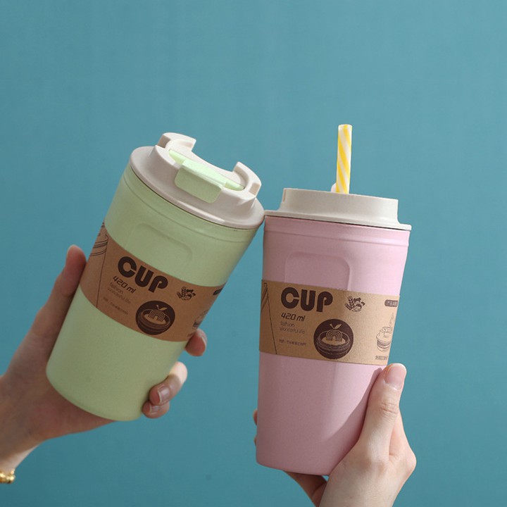 Nhà cửa & Đời sống > Dụng cụ nhà bếp > Dụng cụ pha trà, cà phê || HCM - Bình nước lúa mì Cup 420ml mẫu mới 2020 tiện lợi đựng trà cà phê take awayCòn hàng