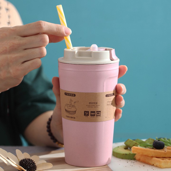 HCM - Bình nước lúa mì Cup 420ml mẫu mới 2020 tiện lợi đựng trà cà phê take away
