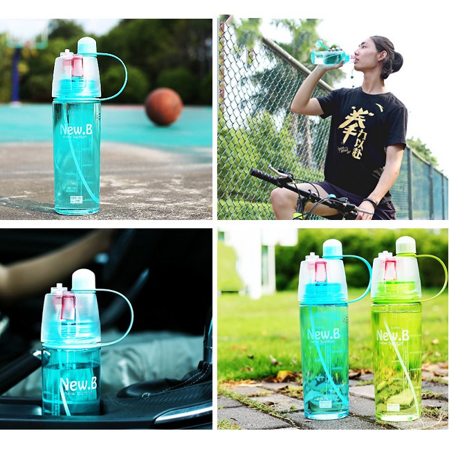 Giới thiệu HCM - Bình nước nhựa thể thao NewB 600ml có vòi xịt phun nước