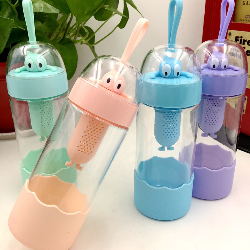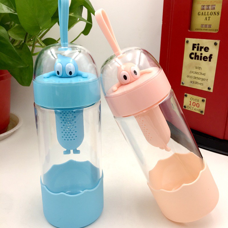 HCM - Bình nước thủy tinh Wormy kute kèm bộ lọc pha trà, cà phê 370ml