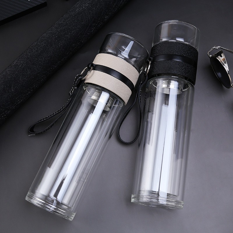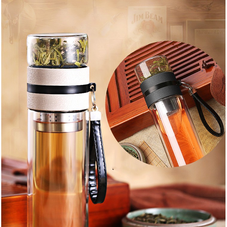 HCM - Bình thủy tinh 2 lớp pha trà cao cấp 400ml kèo dây xách