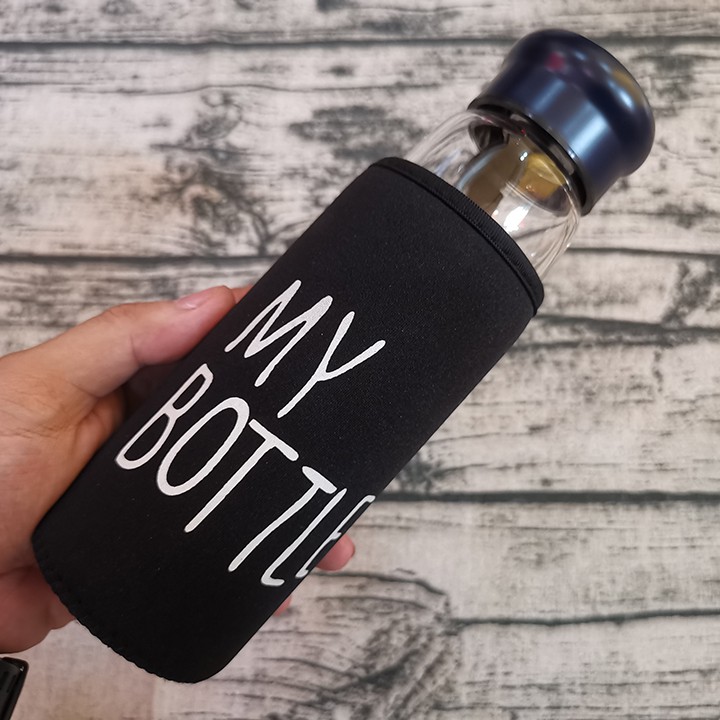 HCM - Bình thủy tinh uống trà My Bottle 550ml kèm túi chống nóng