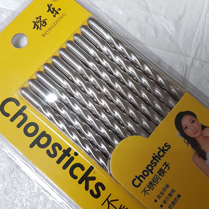 HCM - Bộ 5 đôi đũa inox 23cm đuôi xoắn chính hãng RongDong