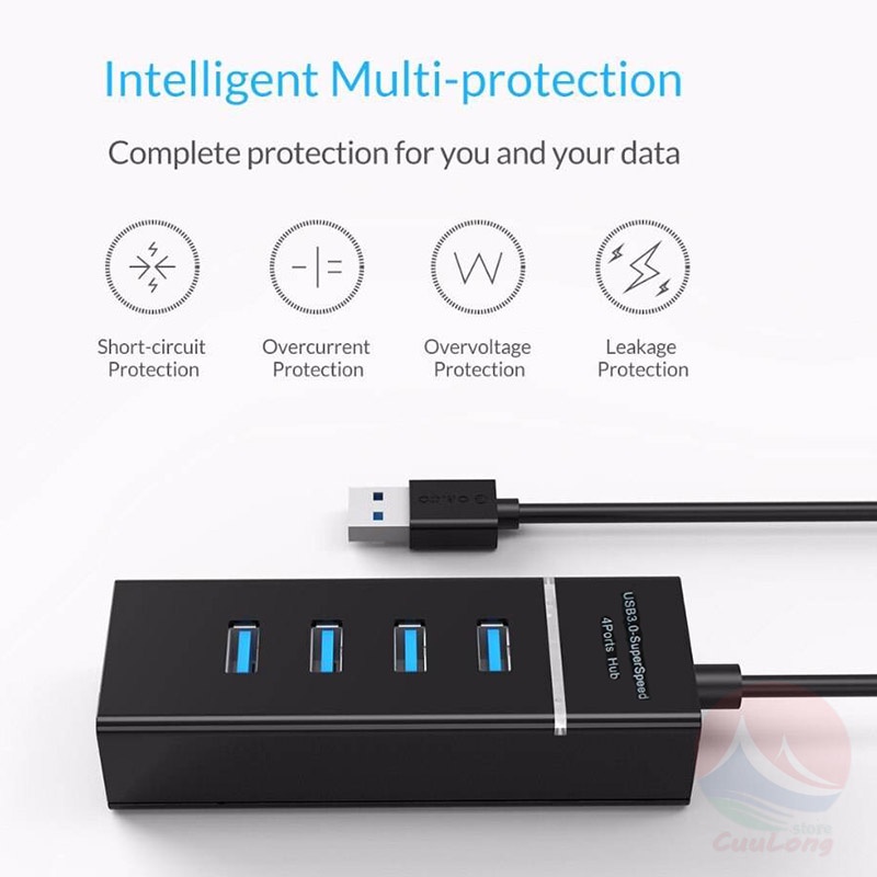Bộ chia cổng sạc công nghệ USB 3.0 giúp truyền data tốc độ cao, khi cắm cổng usb 3.0 của máy tính. Còn dùng cổng 2.0 thì sẽ chậm hơn.