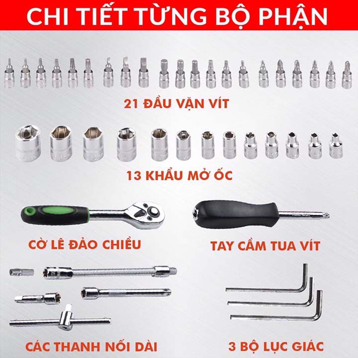 Nhà cửa & Đời sống > Dụng cụ & Thiết bị tiện ích > Dụng cụ > Hộp dụng cụ cầm tay || [HCM] Bộ dụng cụ mở bulong ốc vít đa năng 46 chi tiết, Không han gỉ Hàng Mới, Bộ dụng cụ sửa chữa oto xe máy 46 mónCòn hàng