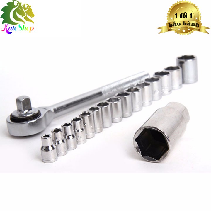 + 18 chi tiết 1/4”: 4.5, 5, 6, 7, 8, 9, 10, 11, 12mm & 1/2”, 7/16”, 3/8”, 11/32”, 5/16”, f9/32”, 1/4”, 7/32”, 3/16”