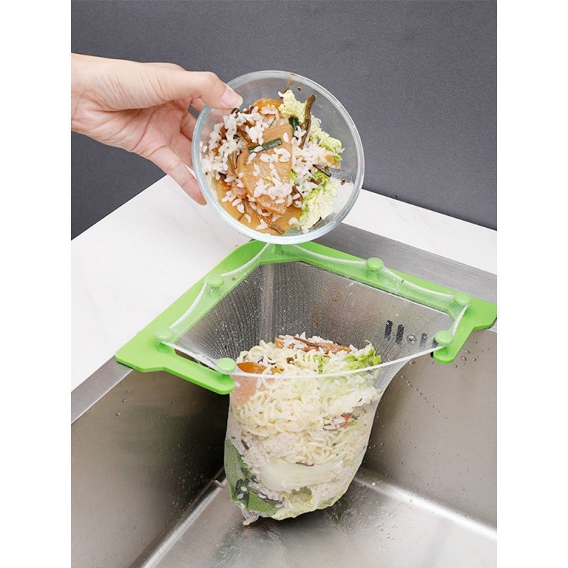 Nhà cửa & Đời sống > Dụng cụ chăm sóc nhà cửa > Túi nilon & túi rác || [HCM] Bộ khung treo túi lưới lọc rác bồn rửa chén kèm 50 túi lưới tiện lợi, vệ sinhCòn hàng