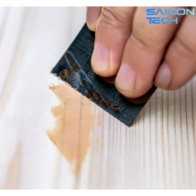- Dùng miếng trét tường, để trét lên bề mặt gỗ, khô ngay sau 15 phút, trét kín vết rỗ gỗ, vết nối, vết nứt gỗ mới - cũ triệt để