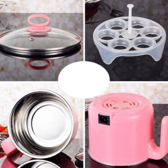 Ca điện nấu mì kiêm nồi lẩu mini siêu tiện lợi + kèm vỉ hấp trứng————————————————————————————