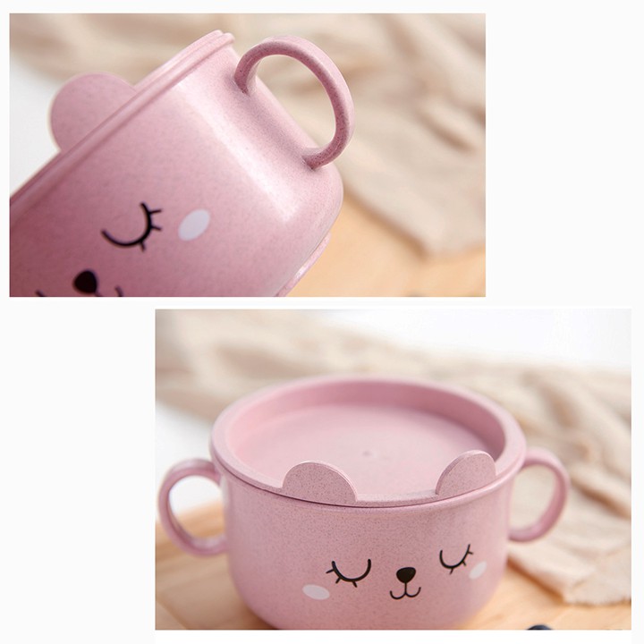 HCM - Chén lúa mì mặt Gấu kèm nắp đĩa hình tai gấu kute đựng thức ăn tiện lợi