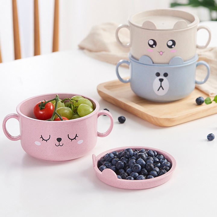 Nhà cửa & Đời sống > Bộ đồ bàn ăn > Dĩa || HCM - Chén lúa mì mặt Gấu kèm nắp đĩa hình tai gấu kute đựng thức ăn tiện lợiCòn hàng