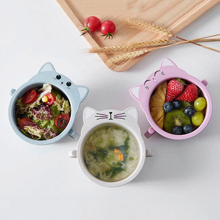 Nhà cửa & Đời sống > Dụng cụ nhà bếp > Tạp dề & gắng tay nấu nướng || HCM - Chén lúa mì thiên nhiên dày có tay cầm chống nóng cho bé họa tiết mèo kuteCòn hàng