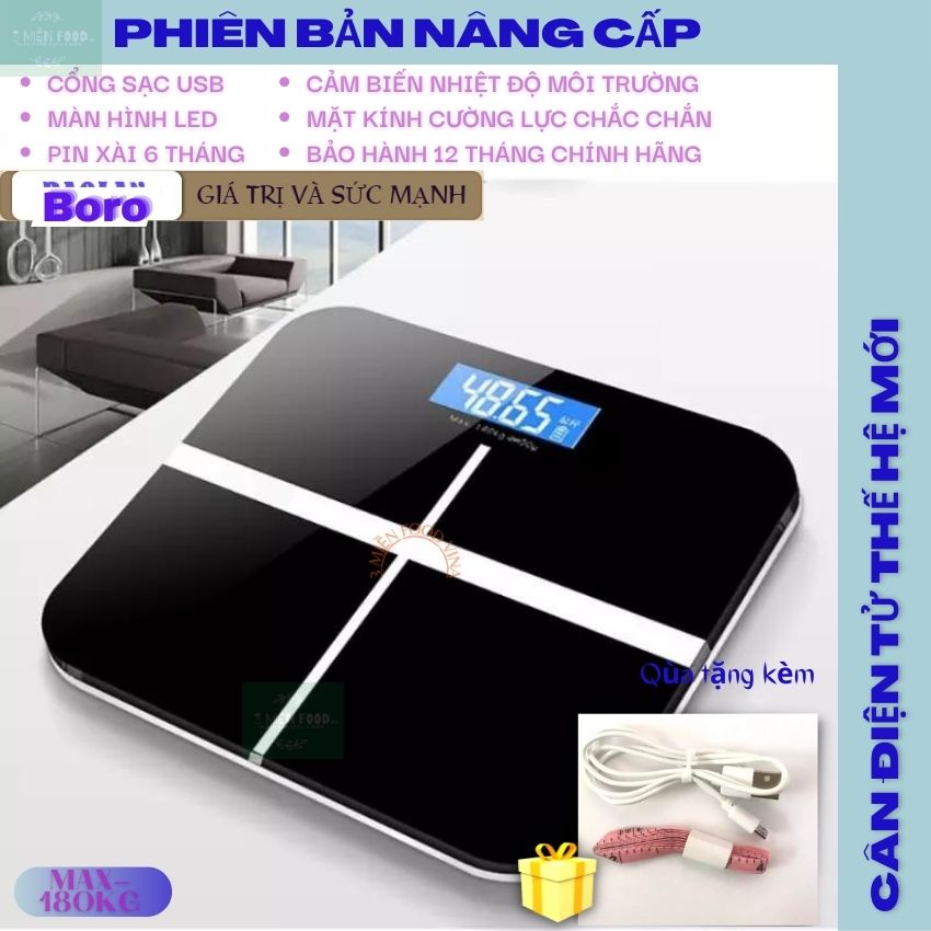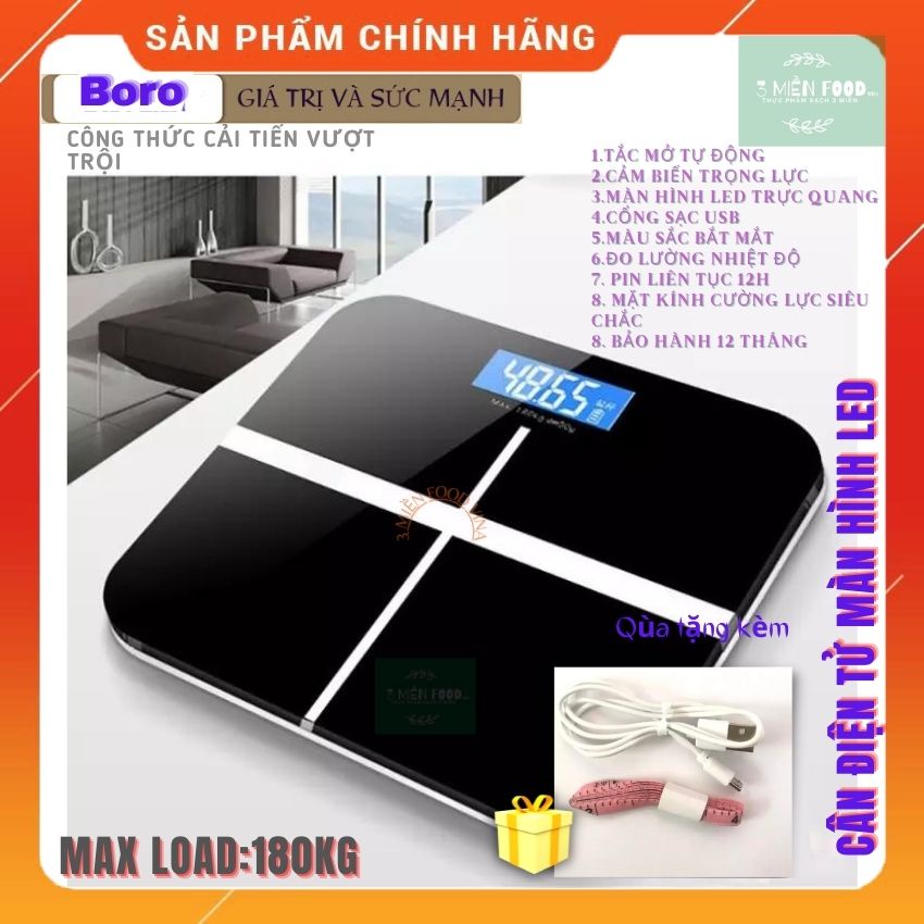 [HCM-Chính Hãng]Cân Điện Tử Màn hình led,Cân Sức Khoẻ cổng sạc USB Mặt kính cường lực hiệu BORO- 3 MIỀN FOOD VINA