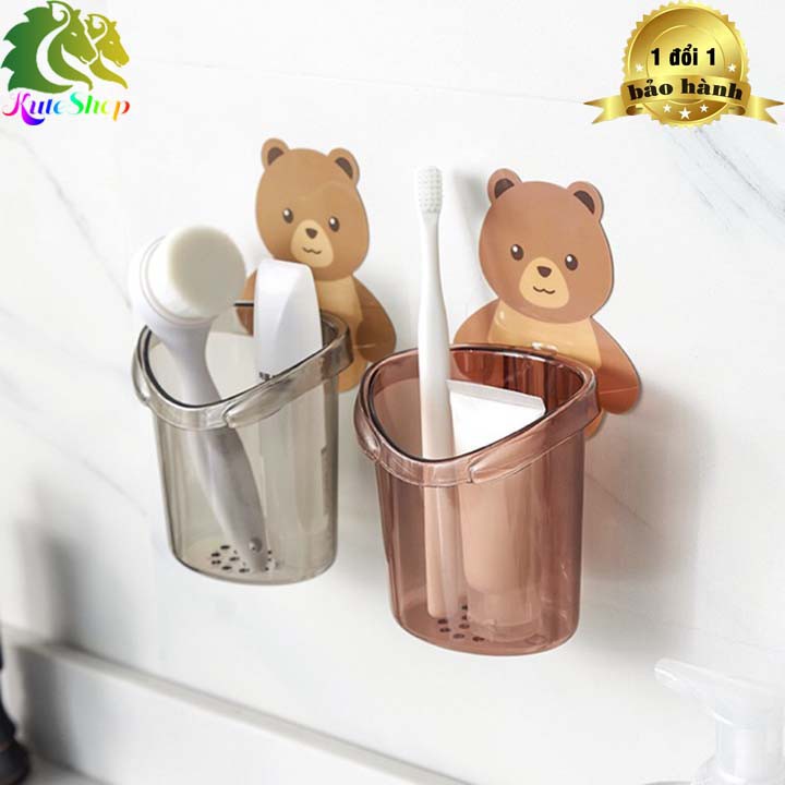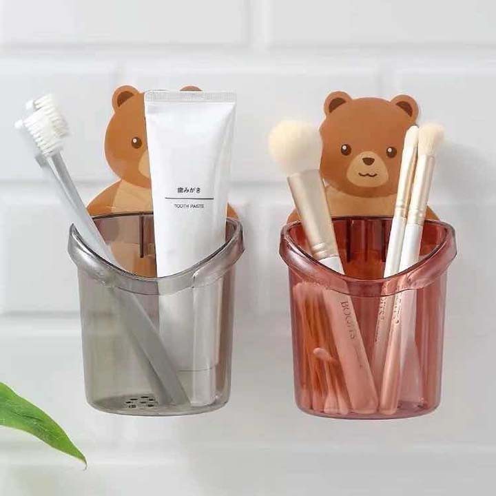 [HCM] Cốc gấu dán tường để bàn chải đánh răng hình gấu có lỗ thoát nước tiện lợi