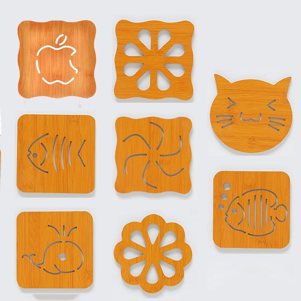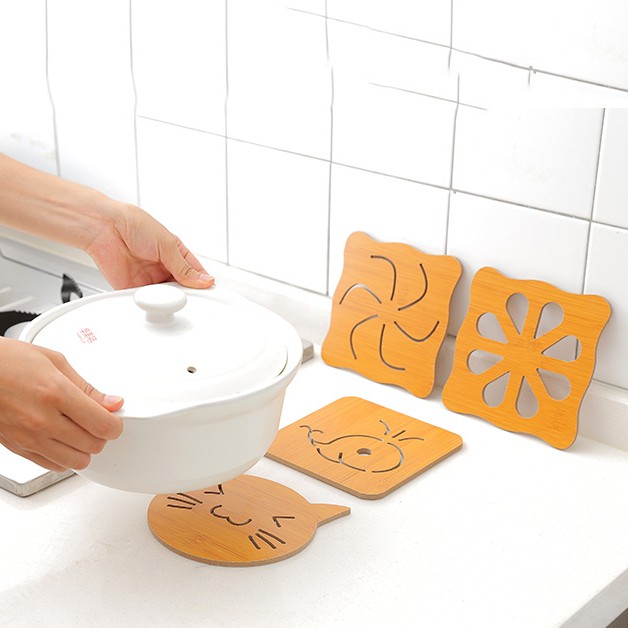 Nhà cửa & Đời sống > Bộ đồ bàn ăn > Khay, tấm lót bàn ăn || HCM - Combo 2 Đế lót nồi gỗ họa tiết dễ thươngCòn hàng