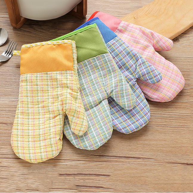 HCM - Combo 2 Găng tay bếp caro chống nóng - tặng miếng dán tường móc treo đồ 10k