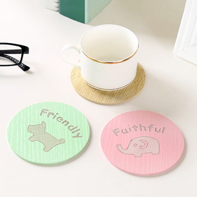 HCM - Combo 3 đế lót ly gỗ cao cấp kiểu Nhật Pastel ngọt ngào