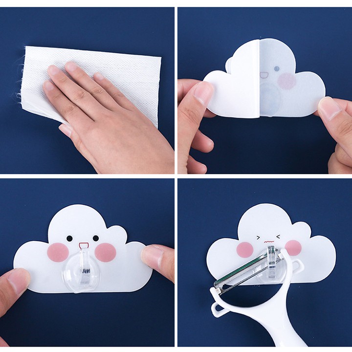 Nhà cửa & Đời sống > Sắp xếp nhà cửa > Móc treo || HCM - Combo 4 miếng dán tường treo đồ hình mây kute dễ thương cho nhà thêm xinhCòn hàng