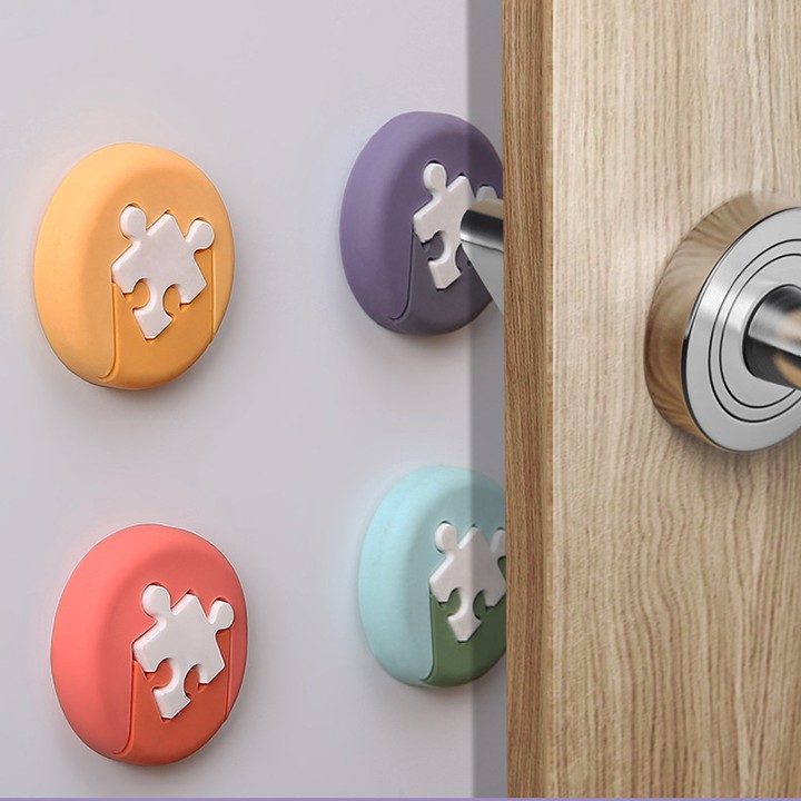 Nhà cửa & Đời sống > Nội thất > Miếng chặn cửa || HCM - Cục Silicon mảnh Xếp hình chặn tay nắm cửa bảo vệ sơn tường không tróc không trầy xướcCòn hàng