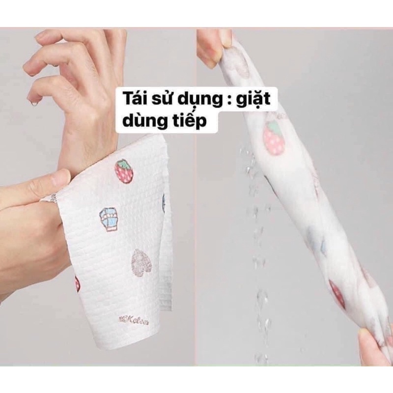 [HCM] Cuộn 100 giấy lau đa năng màu hoạ tiết dễ thương, có thể giặt tái sử dụng siêu tiết kiệm