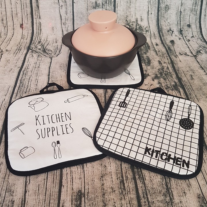 Nhà cửa & Đời sống > Bộ đồ bàn ăn > Khay, tấm lót bàn ăn || HCM - Đế lót nồi lót ly vuông họa tiết đồ dùng làm bếp trẻ trung cho nhà thêm xinhCòn hàng