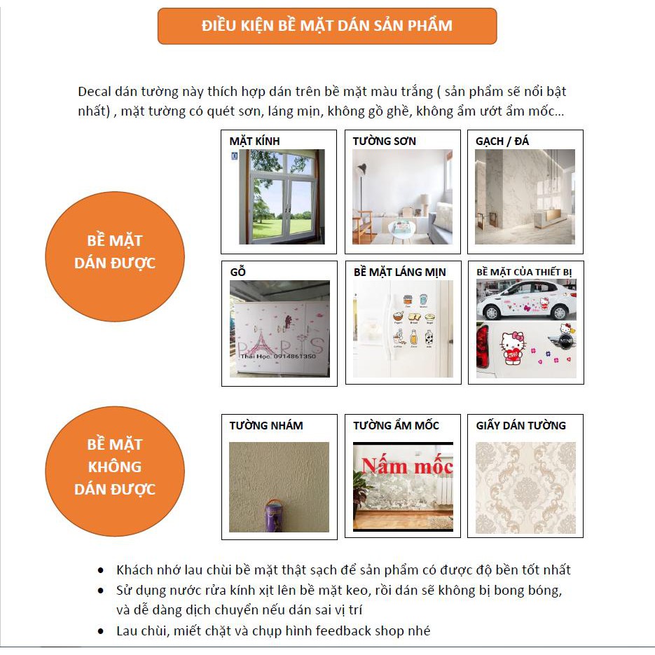 ✔️ Bề mặt dán : Gỗ, gạch, tường, nhựa, tủ lạnh, xe hơi ... và các bề mặt phẳng khác