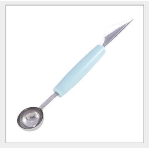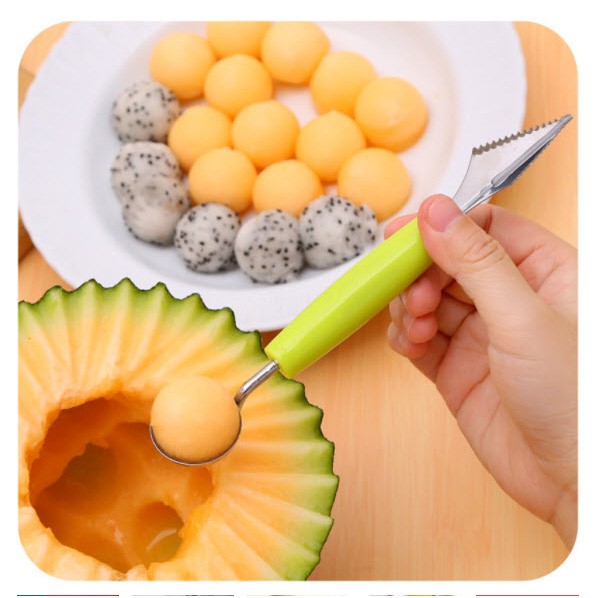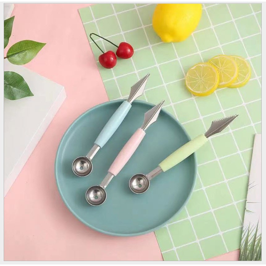 Muỗng hai đầu được thiết kế gồm 2 đầu, một đầu dùng để múc các loại quả mềm như dưa hấu, đu đủ, thanh long… một đầu để tỉa rau củ, hoa quả, cho bạn gái thể hiện sự khéo léo và cắt tỉa nhiều dĩa hoa quả bắt mắt cho cả gia đình.