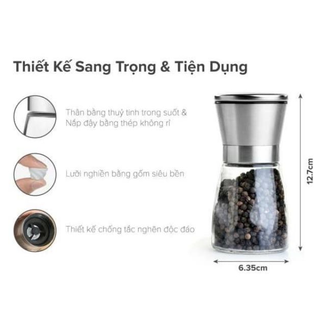 HCM - Dụng Cụ Xay Tiêu Cầm Tay Inox Sang Trọng