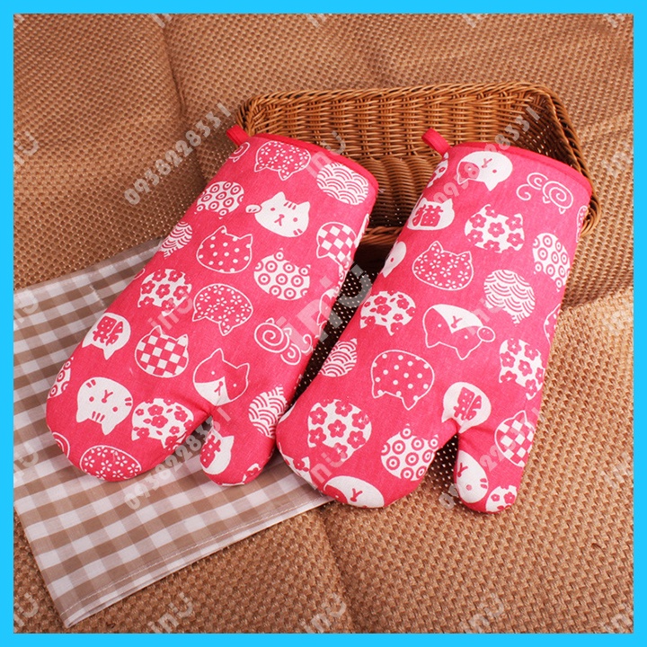 Găng tay bếp chống nóng được làm từ chất liệu vải dày, mềm mại, bên trong có độn bông em ái, giúp bảo vệ tay, tránh bị bỏng khi bê nồi, chảo nóng…trợ lý đắc lực, không thể thiếu, bảo đảm an toàn cho đôi tay mềm mại của chị em phụ nữ.Găng tay bếp được thiết kế tiện dụng, có móc treo để treo lên sau khi sử dụng và dễ dàng vệ sinh, chùi rửa khi bị bẩn.