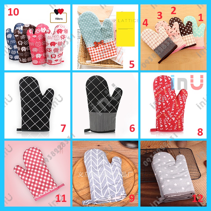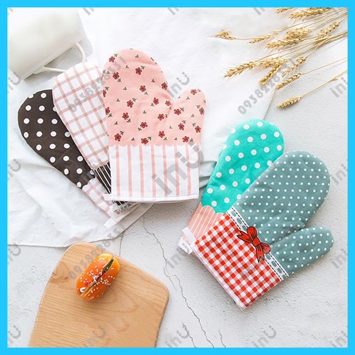 Giới thiệu HCM - Găng tay bếp chóng nóng họa tiết caro, chấm bi, kẻ sọc dễ thương