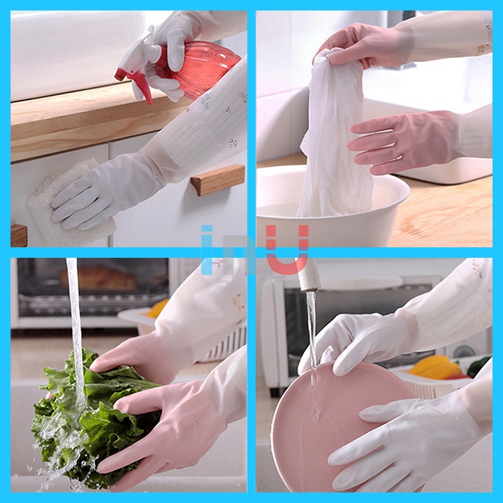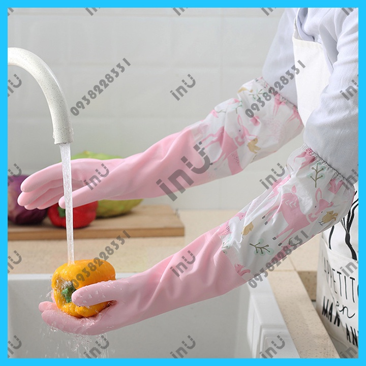 Nhà cửa & Đời sống > Dụng cụ & Thiết bị tiện ích > Găng tay, kính bảo hộ & mặt nạ || HCM - Găng tay dài rửa chén có thun chống tuột màu Pastel phối trắng có lót nhung và không nhungCòn hàng